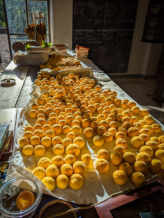 Nature is at its most abundant: plentiful wild figs, pomegranates, truffles and pumpkins. The race is on to gather walnuts before the wild boar come snuffling through the leaves. The Reschio team first focus on the grape harvest before moving into the olive groves. Soon our delicious oil is on the tables and in the Bottega.